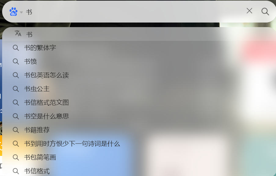 当我们在输入框中输入内容的时候,例如百度搜索和淘宝搜索的时候,下面会出现很多联想的内容,比如我们输入一个书,下面会出现如下图所示内容。